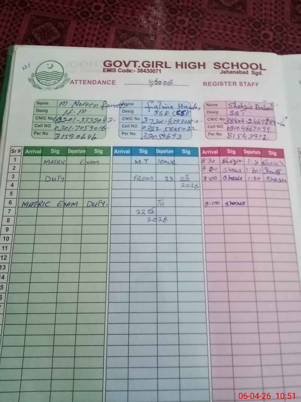| Name: NO**** FA**** Designation: (School Headmaster's/Headmistress's) SST (SCI) Phone/Cell Number: 03**** |