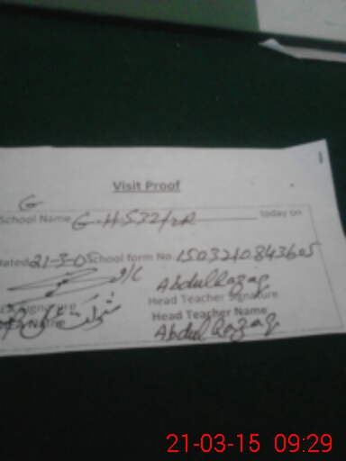 | School Visited by School Health & Nutrition Supervisor (No. of Visits) | 1 | Name1: | Ali Raza | Name2: | |