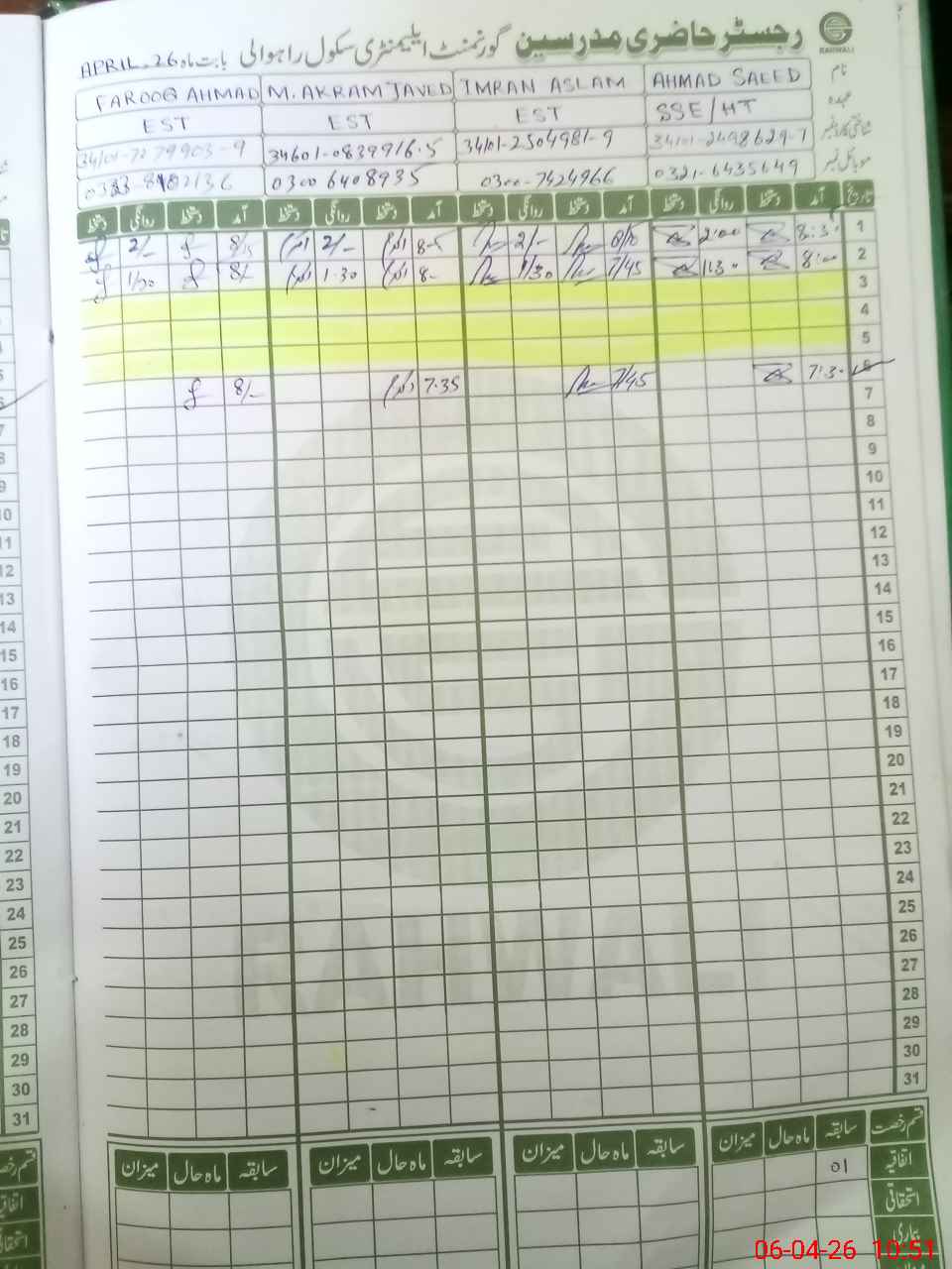| 34**** | Kh**** Sh**** Ch**** | EST Vernacular | Regular | 0 | 0 | 0 | 0 | 0 | 0 | 0 | 0 | 0 | Exam Duty |