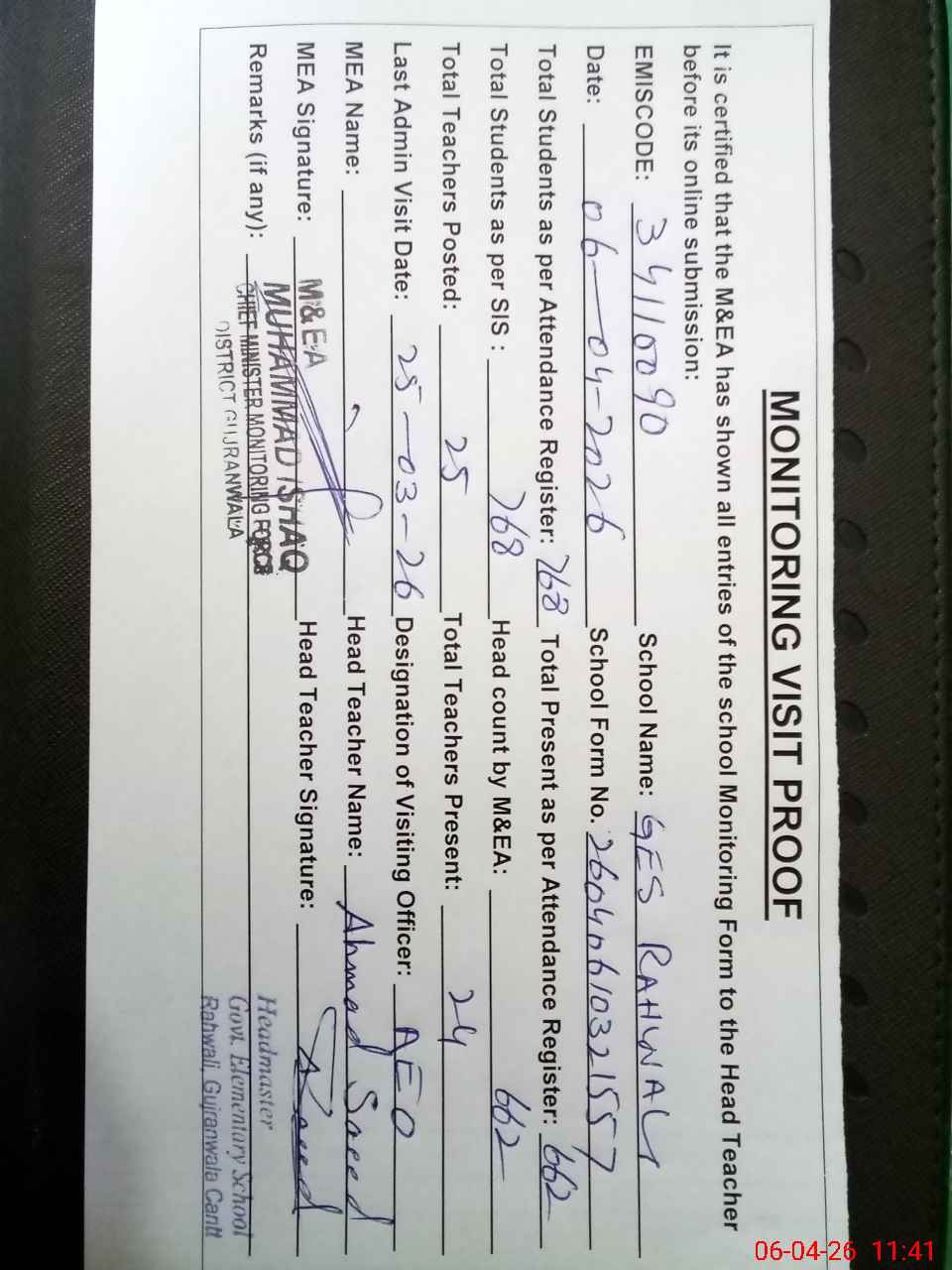 | EMIS Code: 34110090 | Name of School: GES RAHWALI | |||