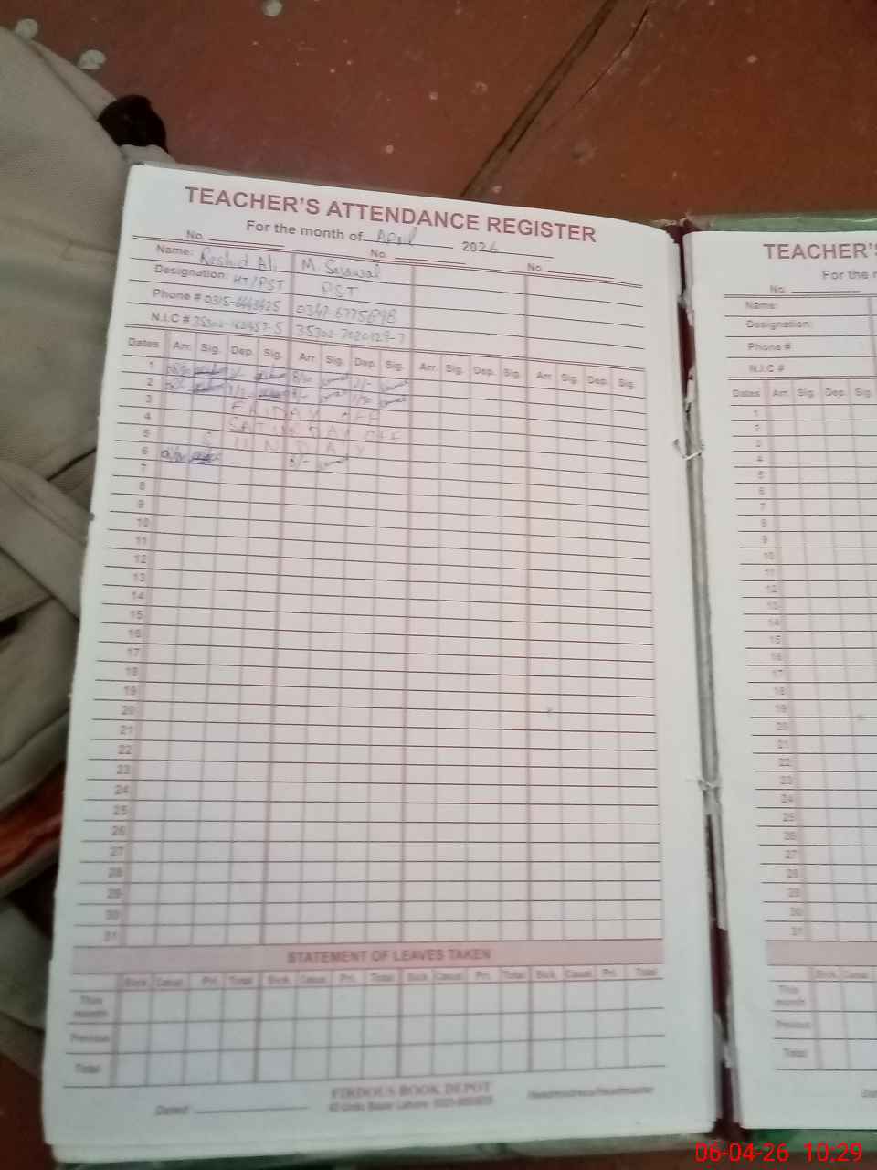 | Name: Ra**** Al**** Designation: (School Headmaster's/Headmistress's) PST Phone/Cell Number: 03**** |