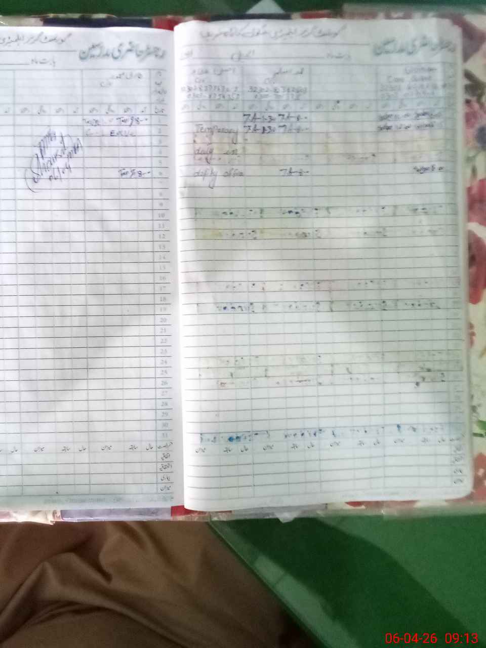 | CNIC | Full Name | Designation | R/C | Absence During Last Calender Month |
