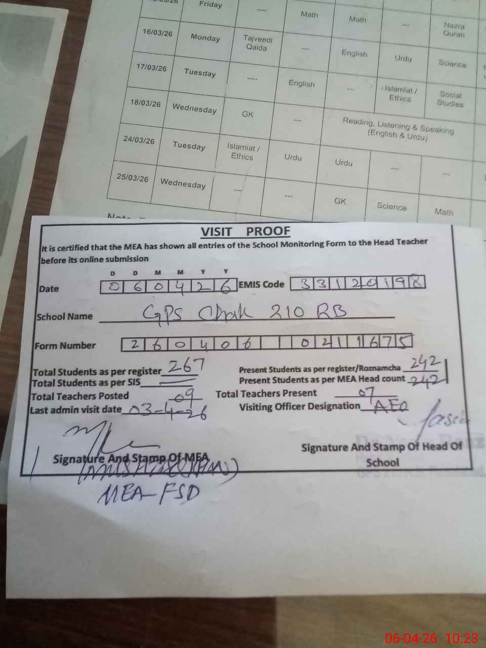| EMIS Code: 33120198 | Name of School: GPS CHAK 210 RB | |||