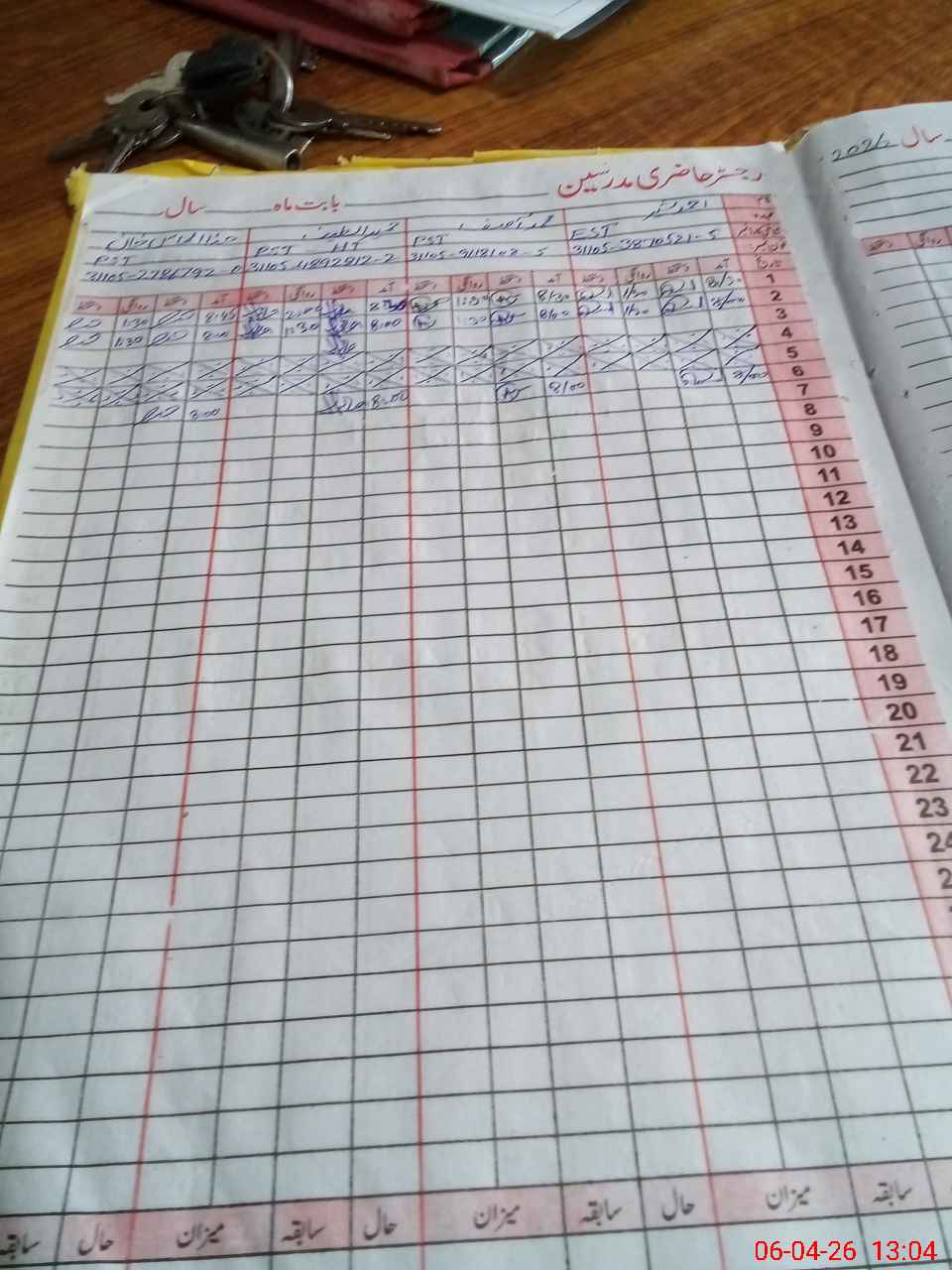 | CNIC | Full Name | Designation | R/C | Absence During Last Calender Month |