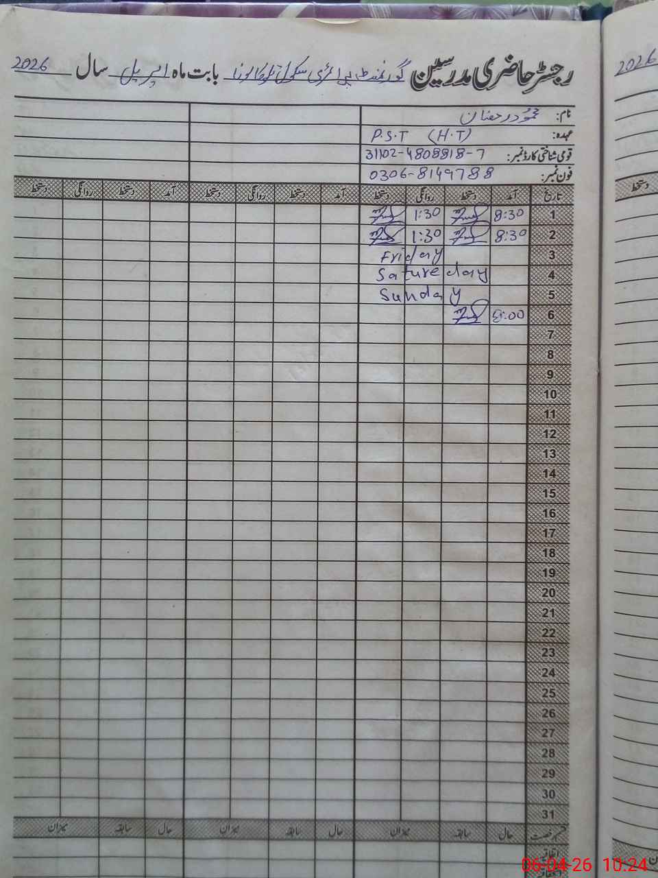 | Name: ME**** RA**** Designation: (School Headmaster's/Headmistress's) PST Phone/Cell Number: 03**** |