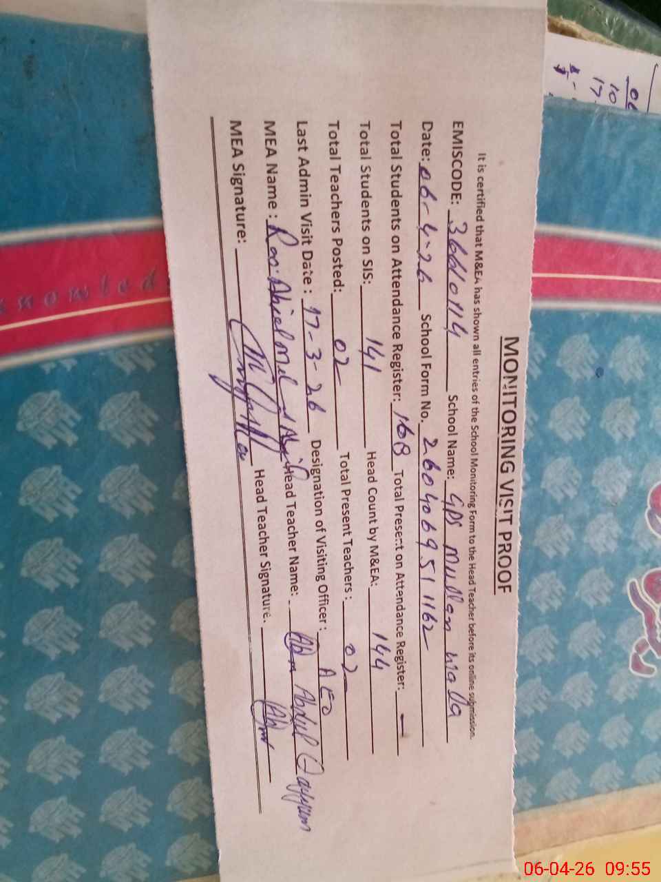 | EMIS Code: 36610114 | Name of School: GPS MULLAN WALA JALALABAD | |||