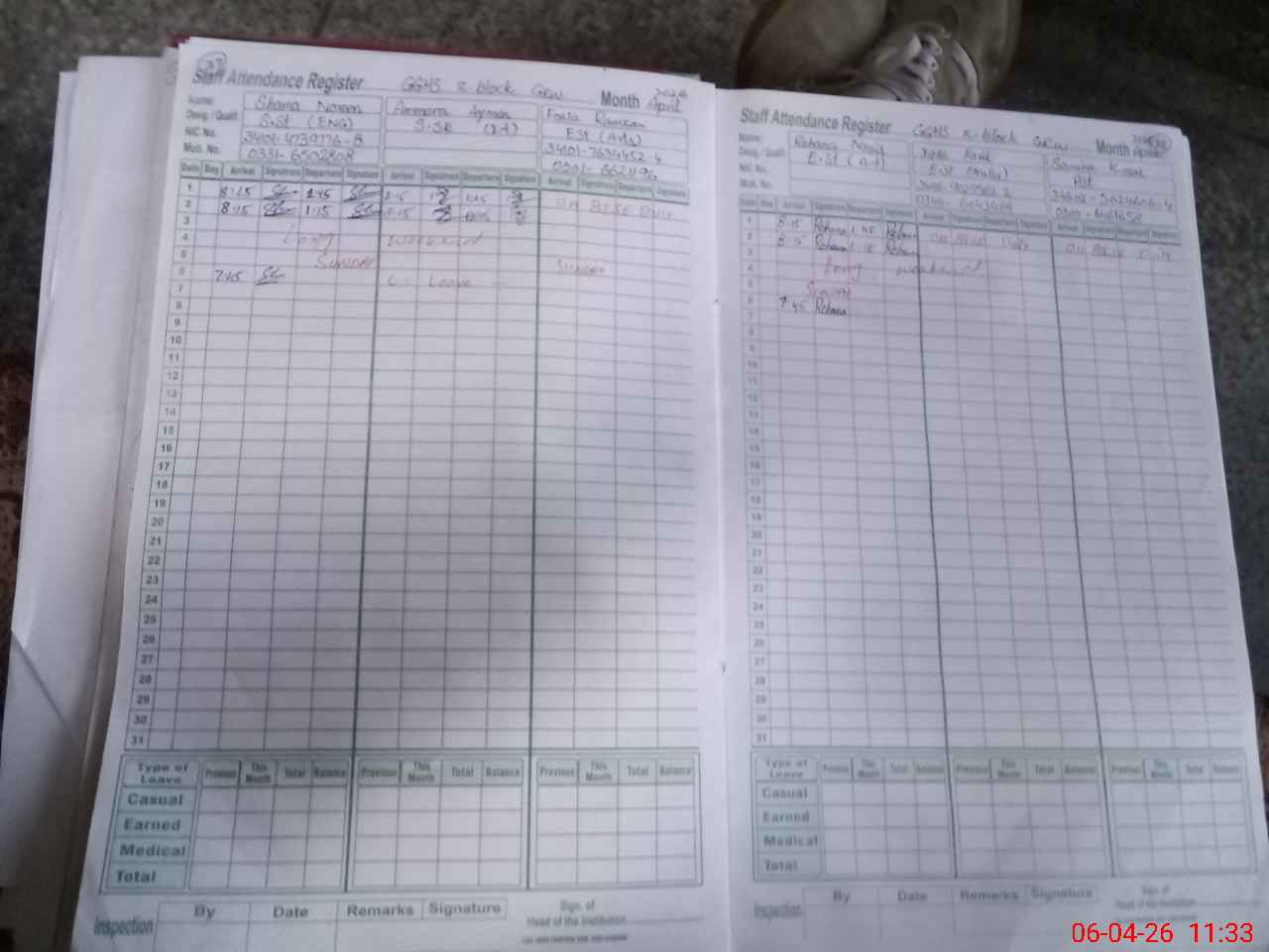 | 34**** | Sa**** Na**** | PST Arts | Regular | 0 | 0 | 0 | 0 | 0 | 0 | 0 | 0 | 0 | Exam Duty |