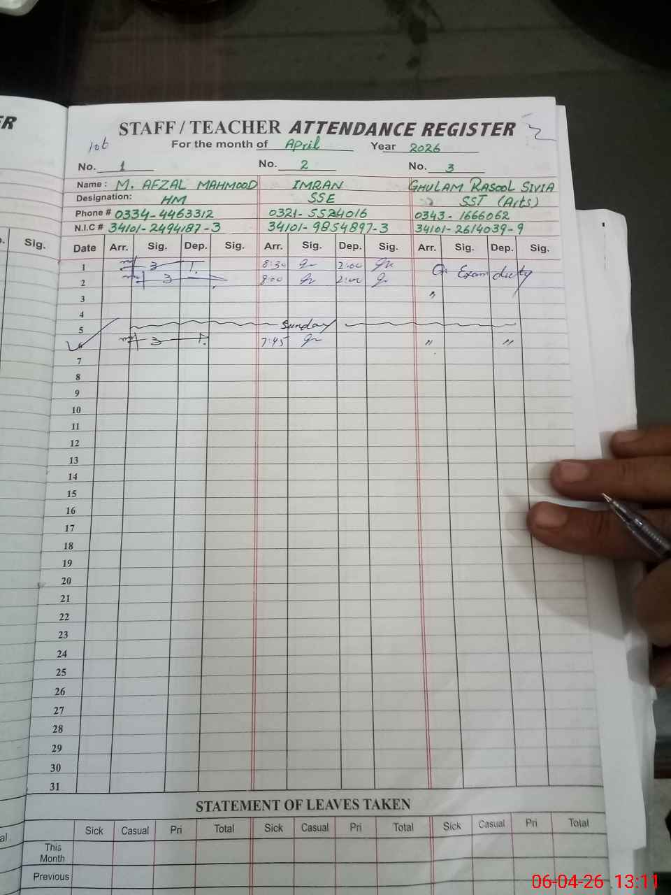 | 34**** | Ah**** Iq**** | PST Arts | Regular | 0 | 0 | 0 | 0 | 0 | 0 | 0 | 0 | 0 | Exam Duty |