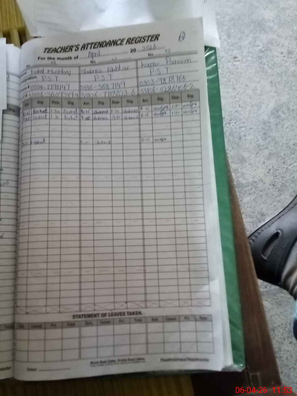 | Name: FA**** MU**** Designation: (School Headmaster's/Headmistress's) PST Phone/Cell Number: 03**** |