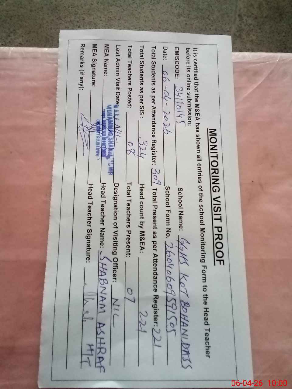 | EMIS Code: 34110145 | Name of School: GGHS KOT BOHANI DASS | |||