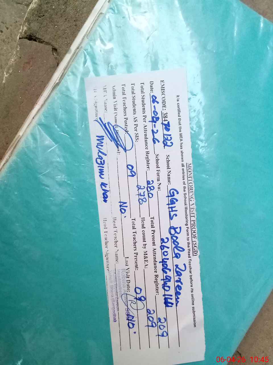 | EMIS Code: 38470122 | Name of School: GGHS BOOLA ZAREEN | |||