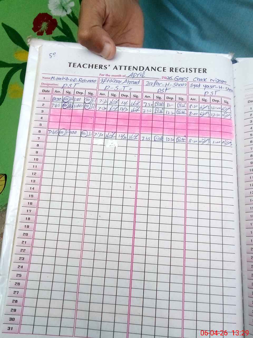 | Name: HA**** URRE**** Designation: (School Headmaster's/Headmistress's) PST Phone/Cell Number: 03**** |