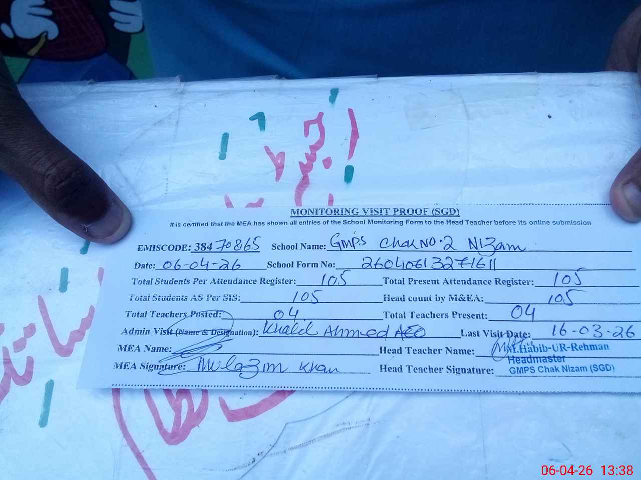 | EMIS Code: 38470865 | Name of School: GMPS CHAK NO.2 NIZAM | |||