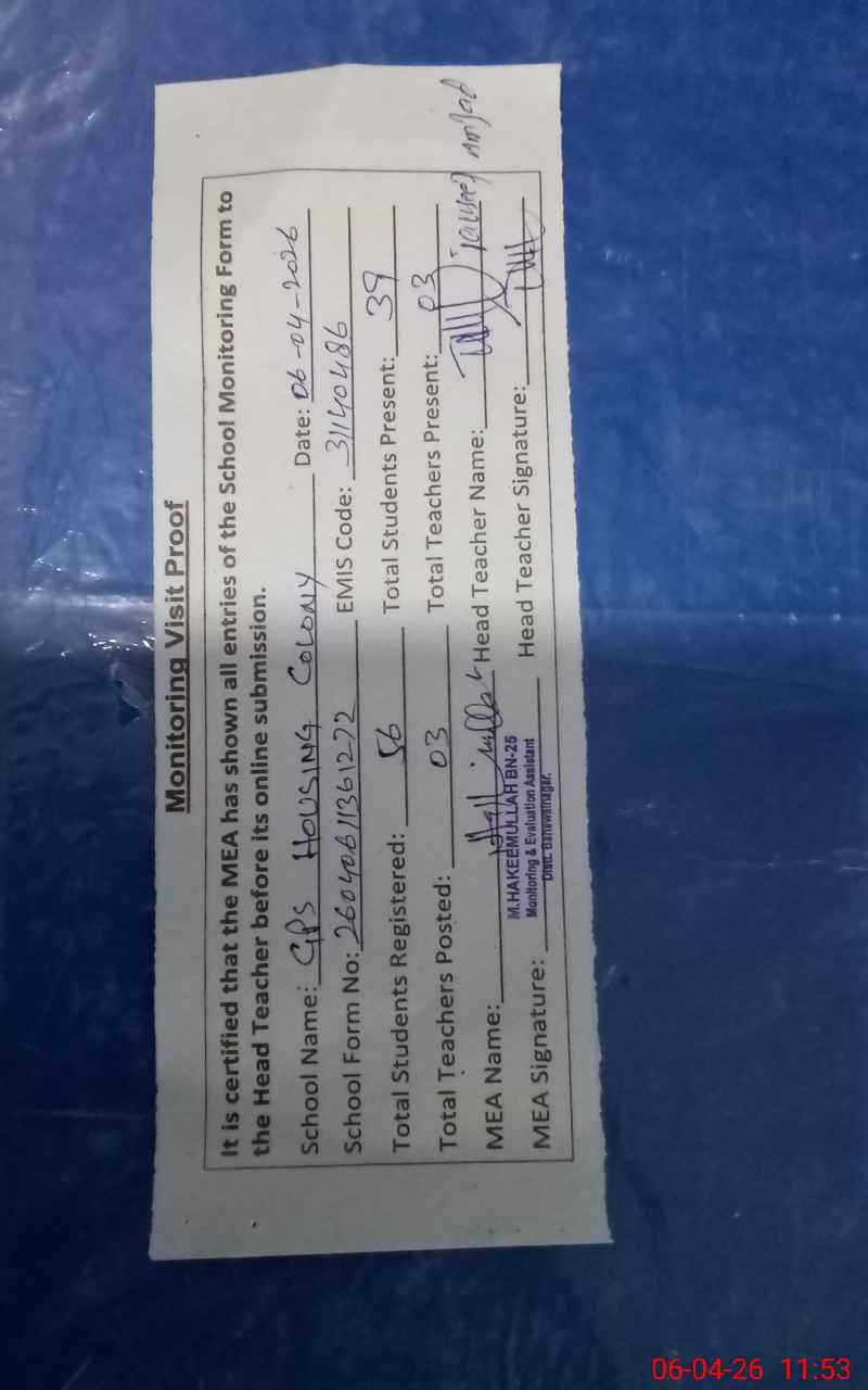 | EMIS Code: 31140486 | Name of School: GPS HOUSING COLONY | |||
