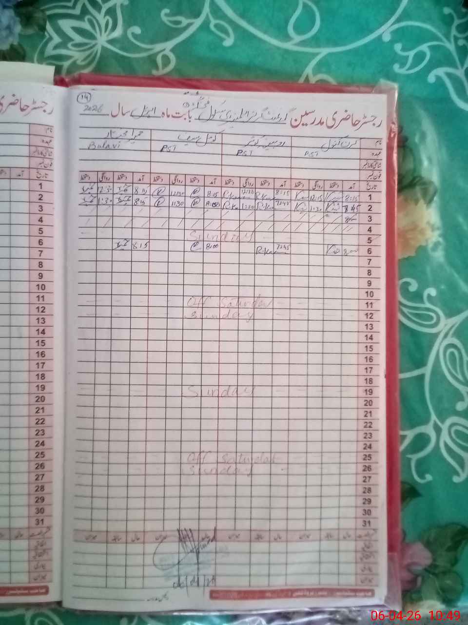 | 34**** | Sh**** Ak**** | EST (Math) | Regular | 0 | 0 | 0 | 0 | 0 | 0 | 0 | 0 | 0 | Exam Duty |