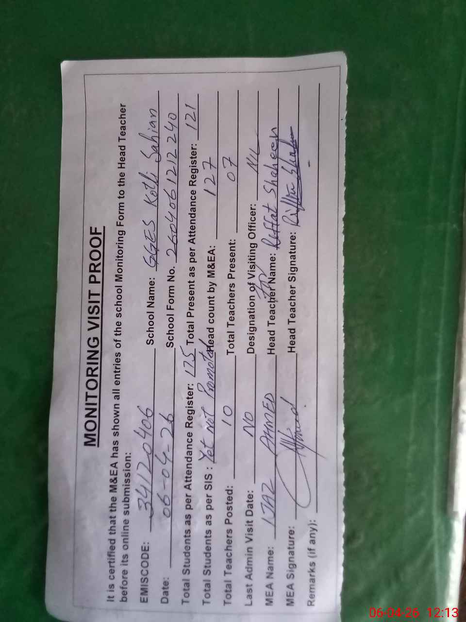 | EMIS Code: 34120406 | Name of School: GGES KOTLI SAHIAN | |||
