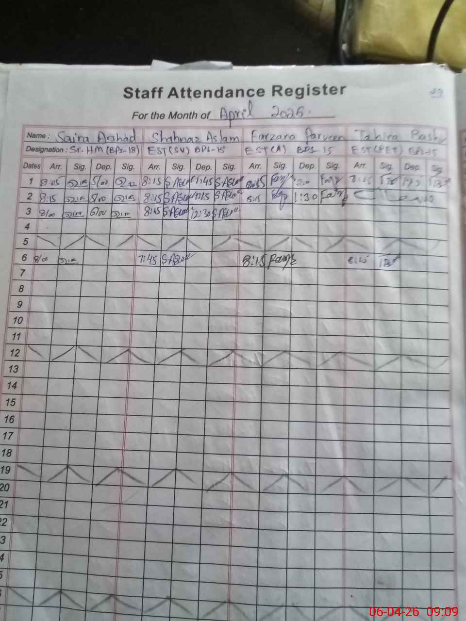 | CNIC | Full Name | Designation | R/C | Absence During Last Calender Month |