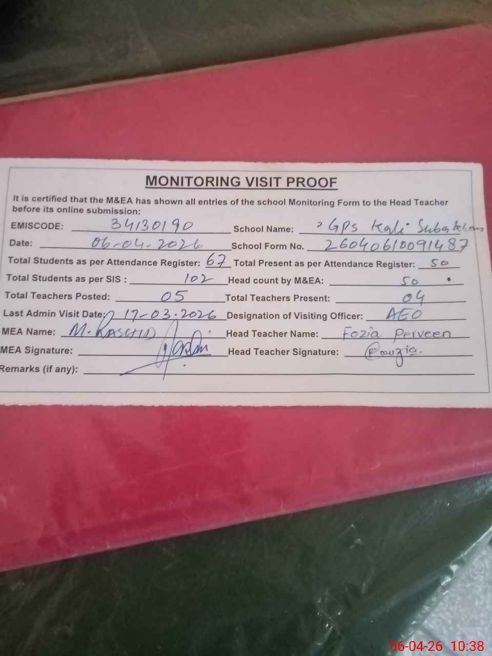 | EMIS Code: 34130190 | Name of School: GPS KALI SUBA | |||