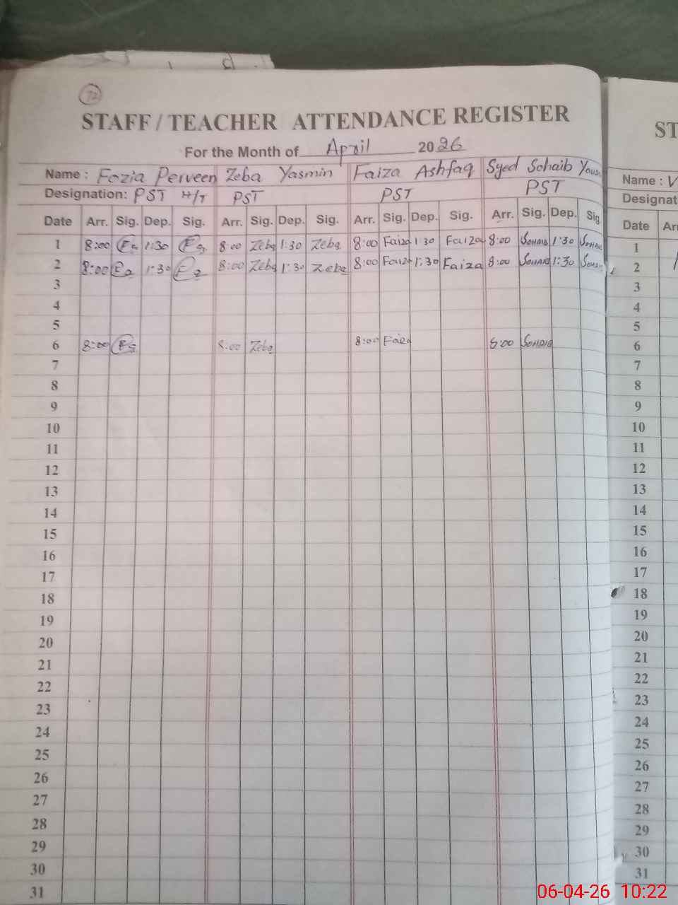 | 34**** | Vi**** MBh**** | ESE (Arts) | Contract | 0 | 0 | 0 | 0 | 0 | 0 | 0 | 0 | 0 | Absent (Un-Authorized) |