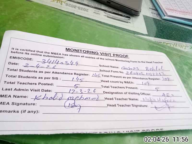 | EMIS Code: 34140349 | Name of School: GGPS CHAK BEHLOL | |||