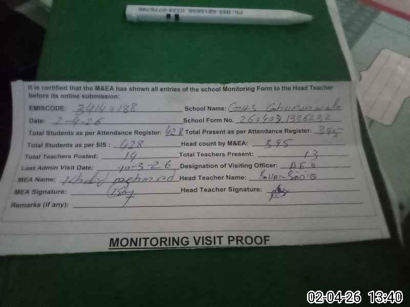 | EMIS Code: 34140188 | Name of School: GHS GHUMMAN WALA | |||