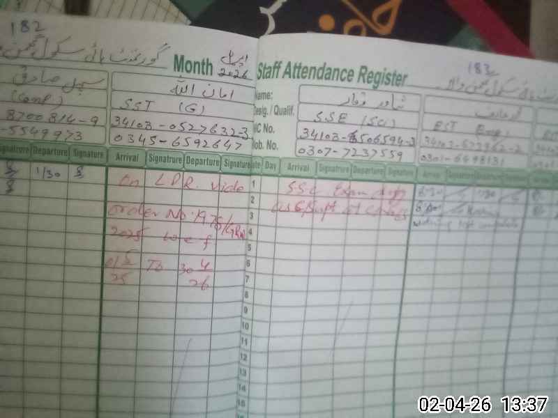 | 34**** | Ra**** Mu**** Ya**** | EST Urdu | Regular | 0 | 0 | 0 | 0 | 0 | 0 | 0 | 0 | 0 | Exam Duty |