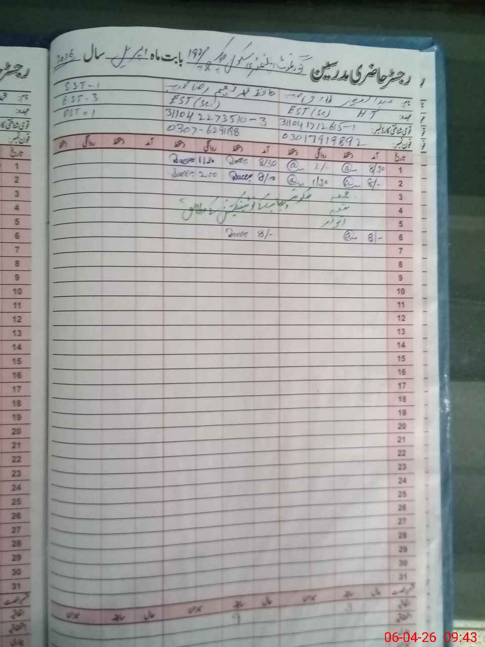 | Name: Ab**** Na**** Ta**** Designation: (School Headmaster's/Headmistress's) EST Phone/Cell Number: 03**** |