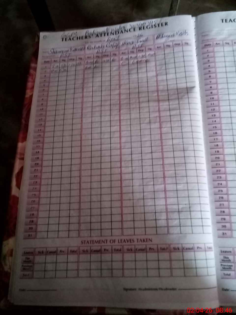 | Attendance Register | Head Teacher | MEA with School | Visit Proof |
