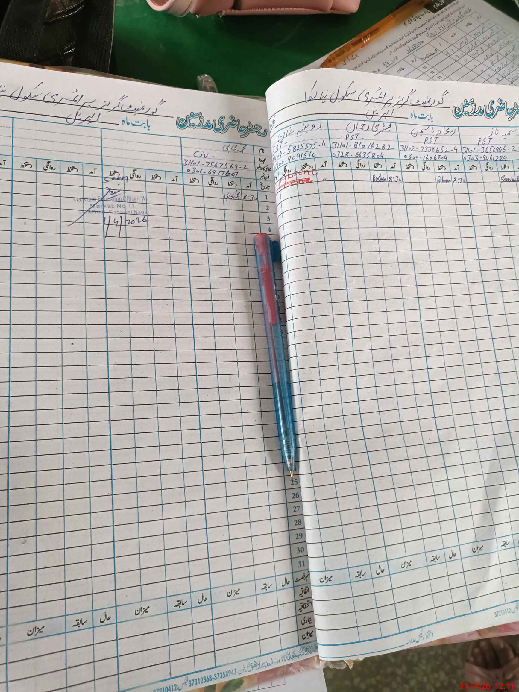 | 31**** | Ro**** Sh**** | EST Urdu | Regular | 0 | 0 | 0 | 0 | 0 | 0 | 0 | 0 | 0 | Absent (Un-Authorized) |