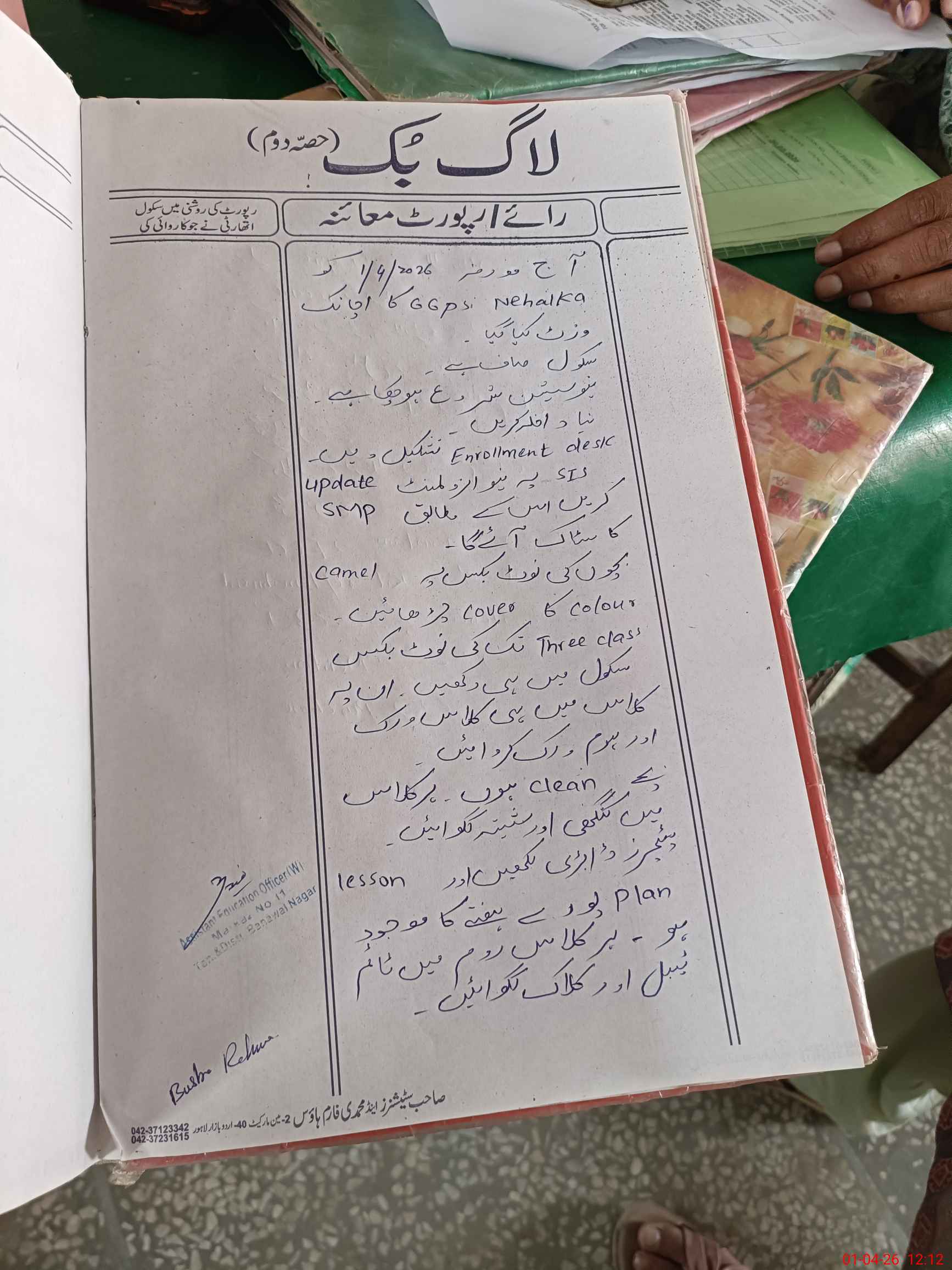 | Attendance Register | Head Teacher | MEA with School | Visit Proof |
