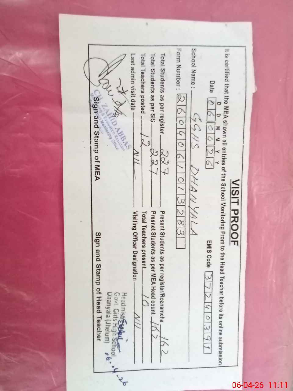 | EMIS Code: 37240391 | Name of School: GGHS DHANYALA | |||