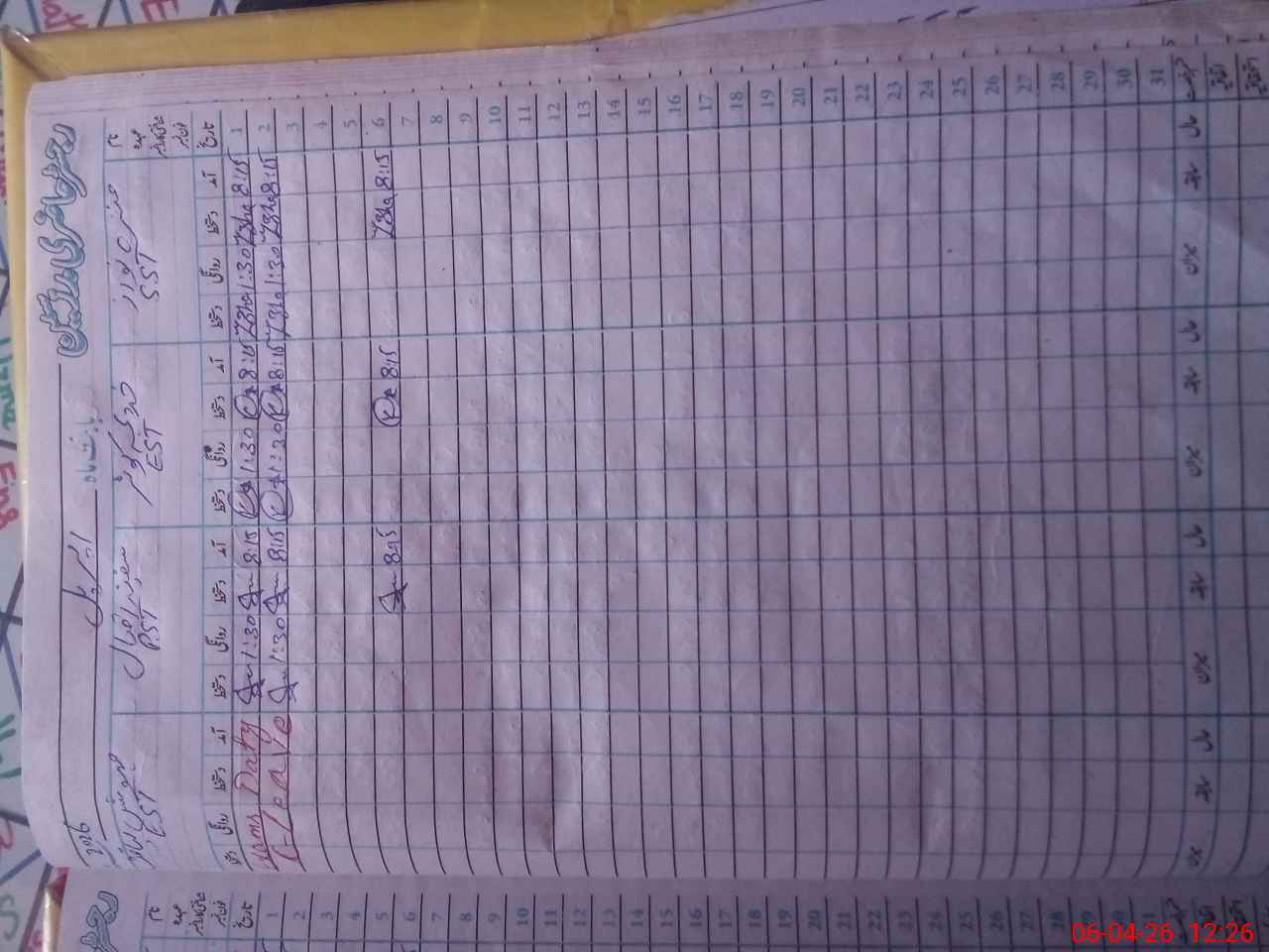 | Leave | Duty | Absent | Maternity | Medical | Ex- Pak |