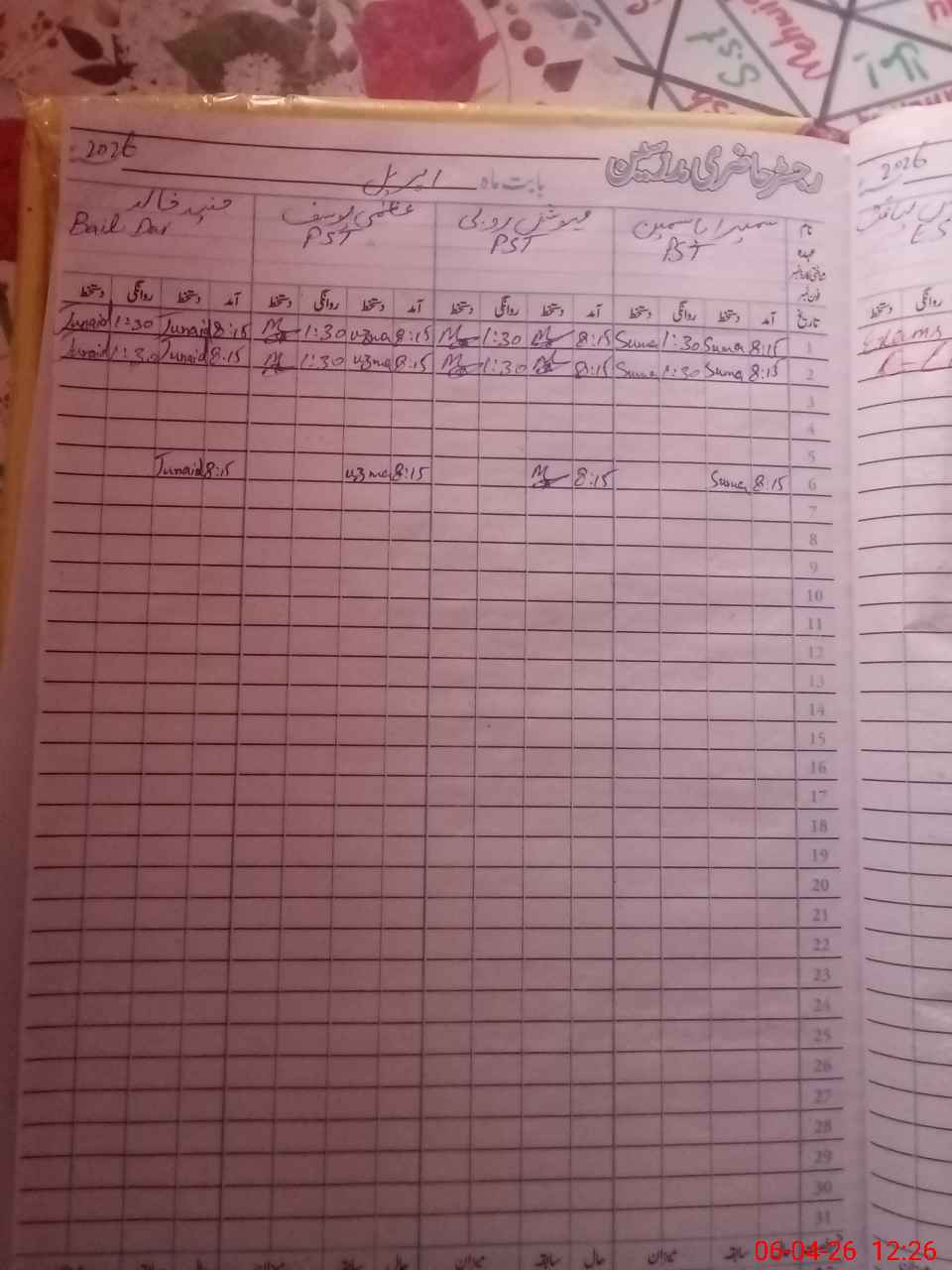 | CNIC | Full Name | Designation | R/C | Absence During Last Calender Month |