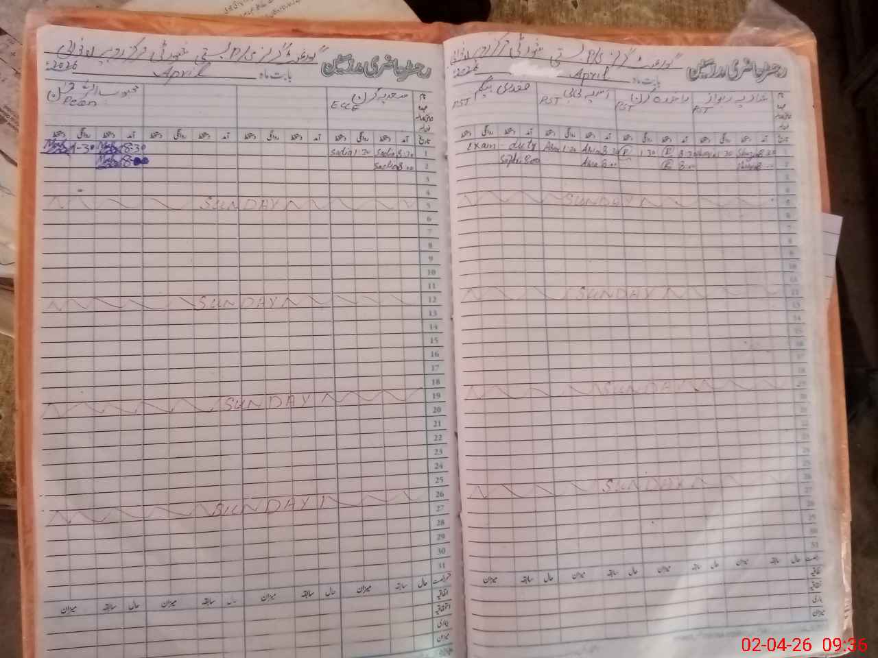 | CNIC | Full Name | Designation | R/C | Absence During Last Calender Month |