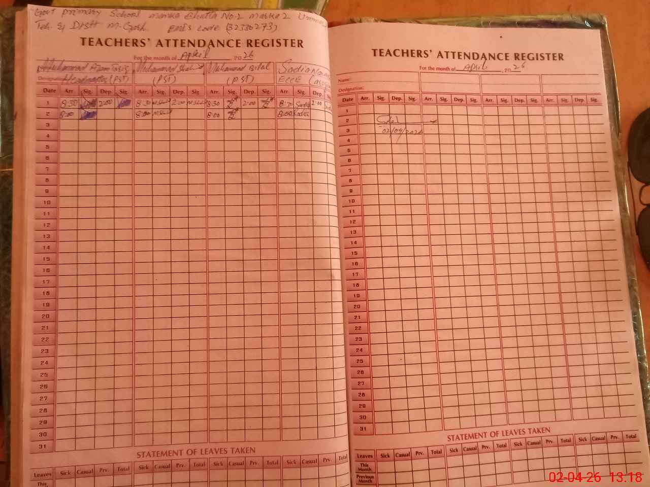 | Name: AZ**** TA**** Designation: (School Headmaster's/Headmistress's) PST/PTC/JV Phone/Cell Number: 03**** |