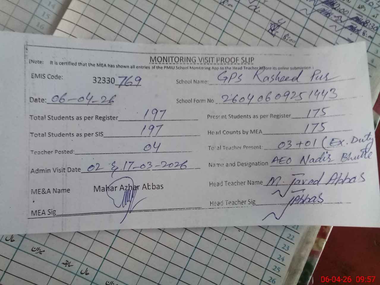 | EMIS Code: 32330769 | Name of School: GPS RASHEED PUR | |||