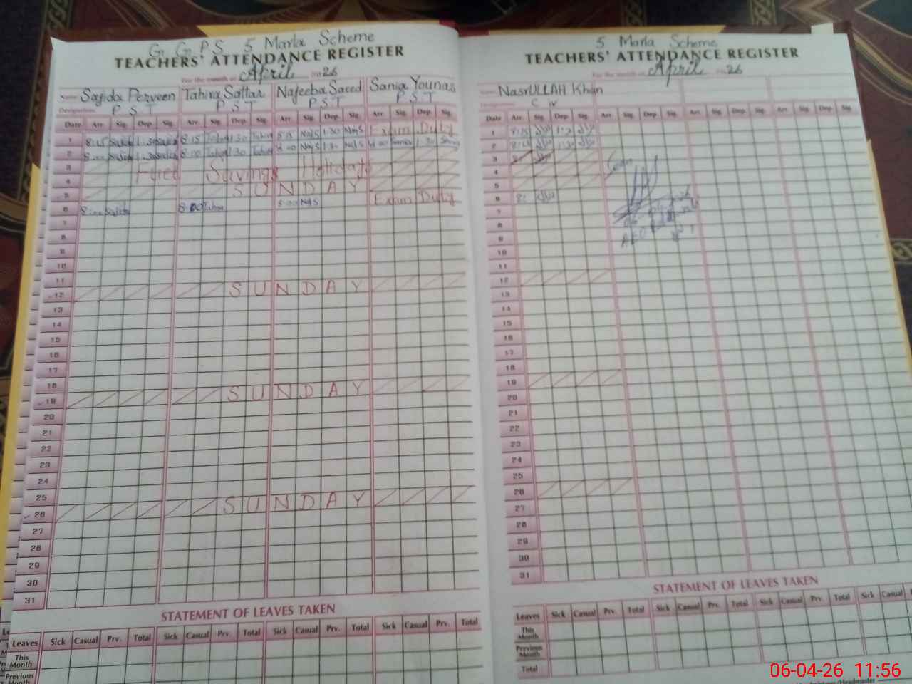 | Leave | Duty | Absent | Maternity | Medical | Ex- Pak |