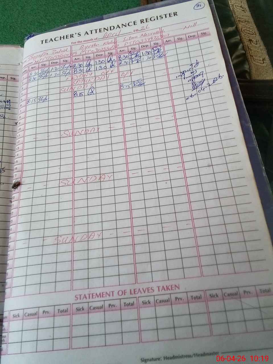 | Attendance Register | Head Teacher | MEA with School | Visit Proof |