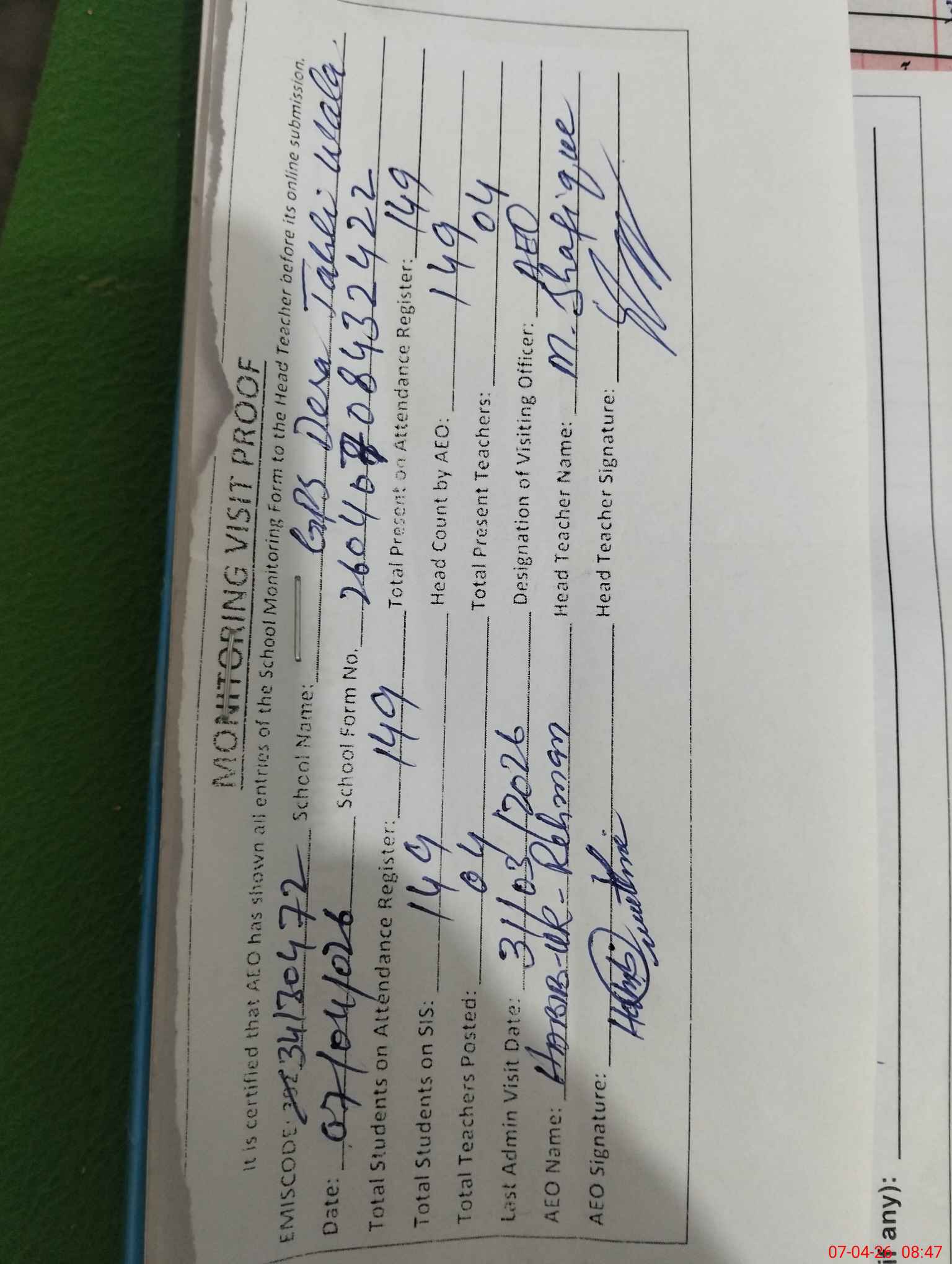 | EMIS Code: 34130472 | Name of School: GPS DERA TAHLI WALA | |||