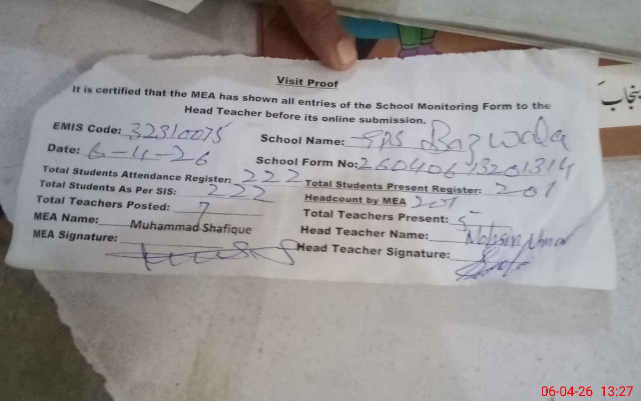 | EMIS Code: 32310075 | Name of School: GPS BAZ WALA | |||