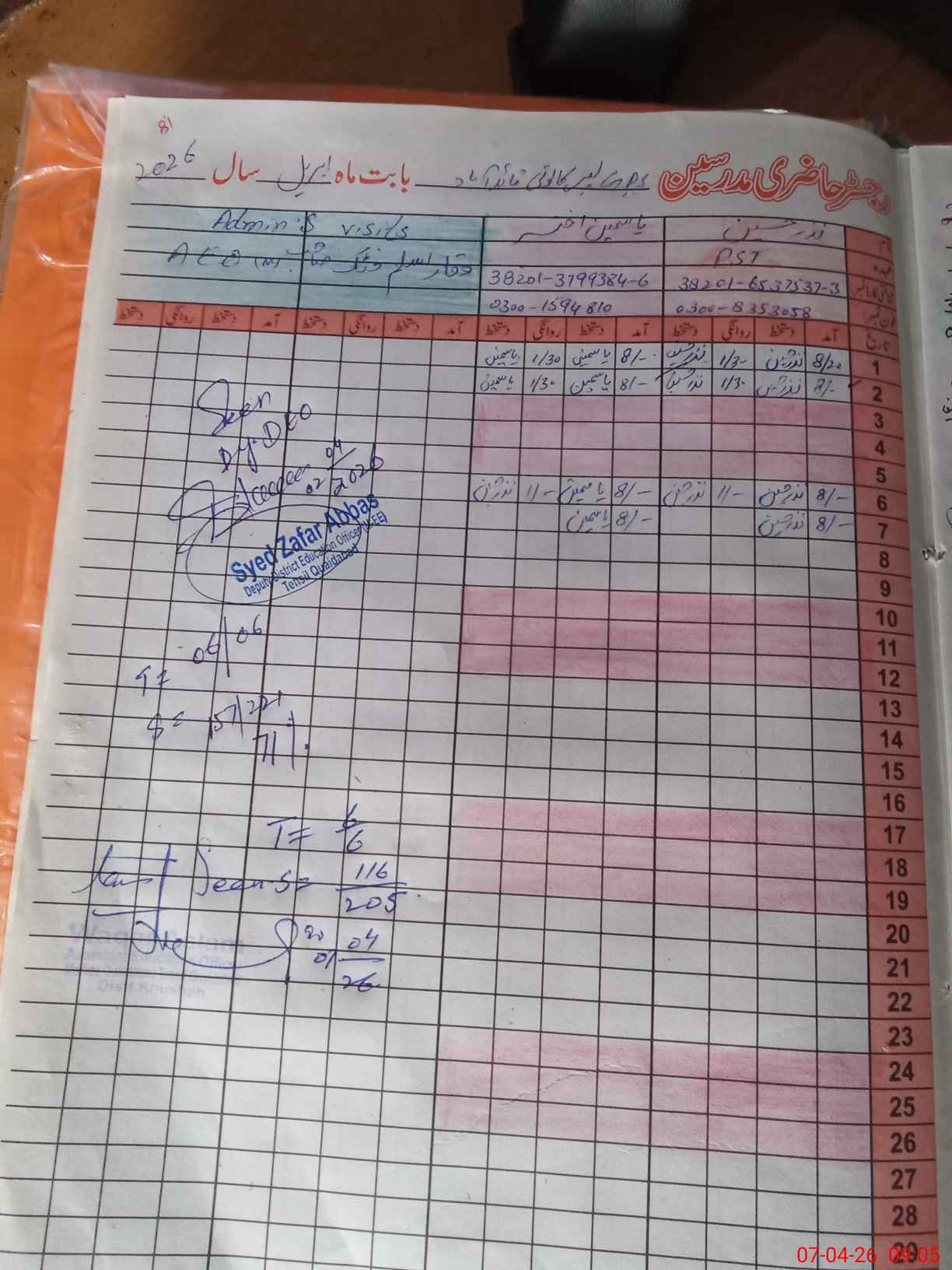 | Attendance Register | Head Teacher | MEA with School | Visit Proof |