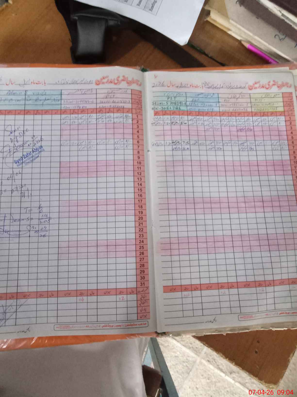 | CNIC | Full Name | Designation | R/C | Absence During Last Calender Month |