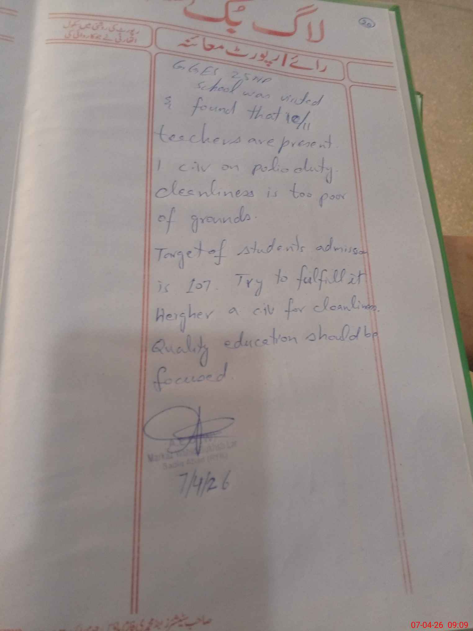 | EMIS Code: 31340099 | Name of School: GGES CHAK NO.25/NP | |||