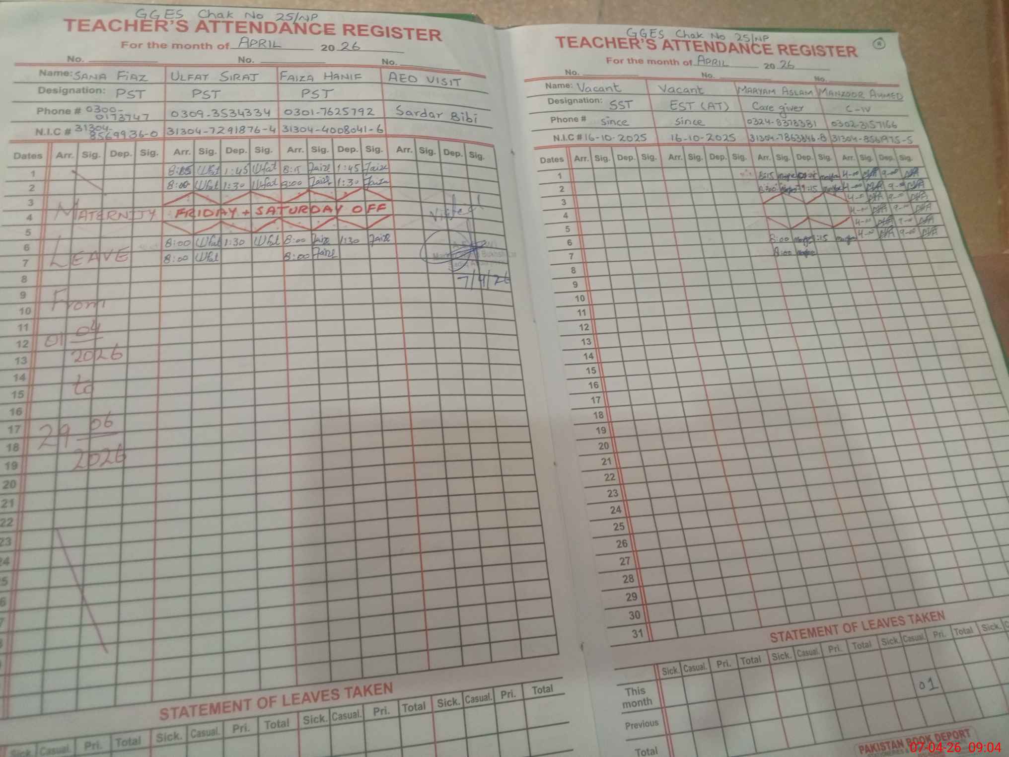 | Leave | Duty | Absent | Maternity | Medical | Ex- Pak |