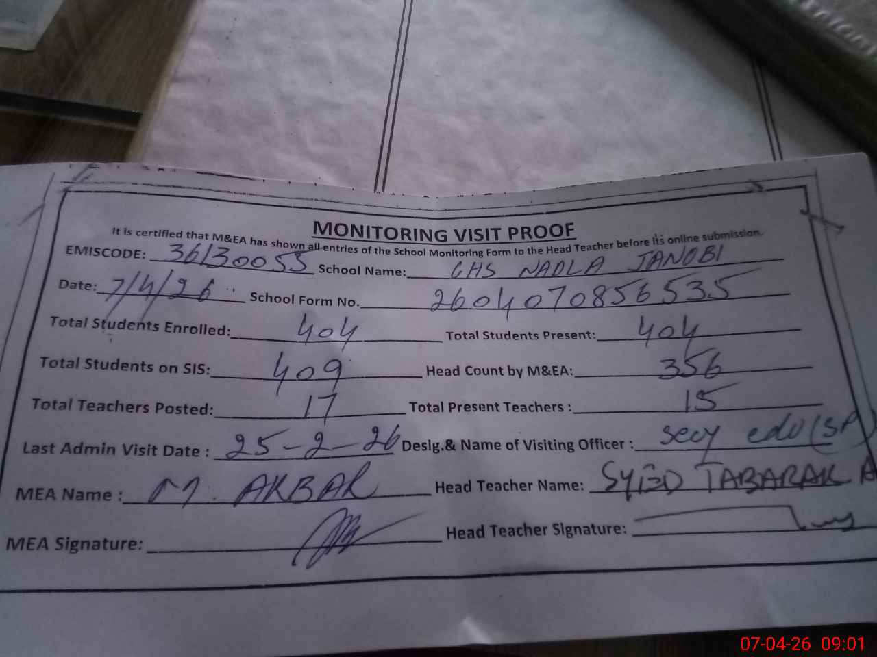 | EMIS Code: 36130055 | Name of School: GHS NANDLA JANOBI | |||