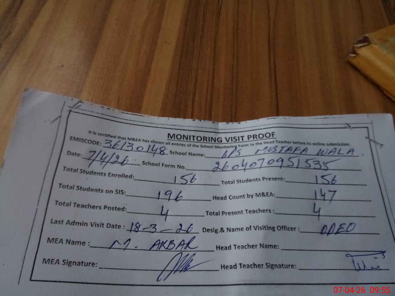 | EMIS Code: 36130148 | Name of School: GPS MUSTAFA WALA | |||