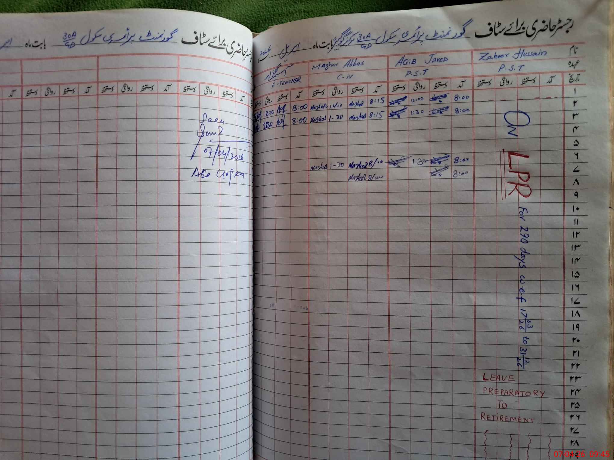 | CNIC | Full Name | Designation | R/C | Absence During Last Calender Month |