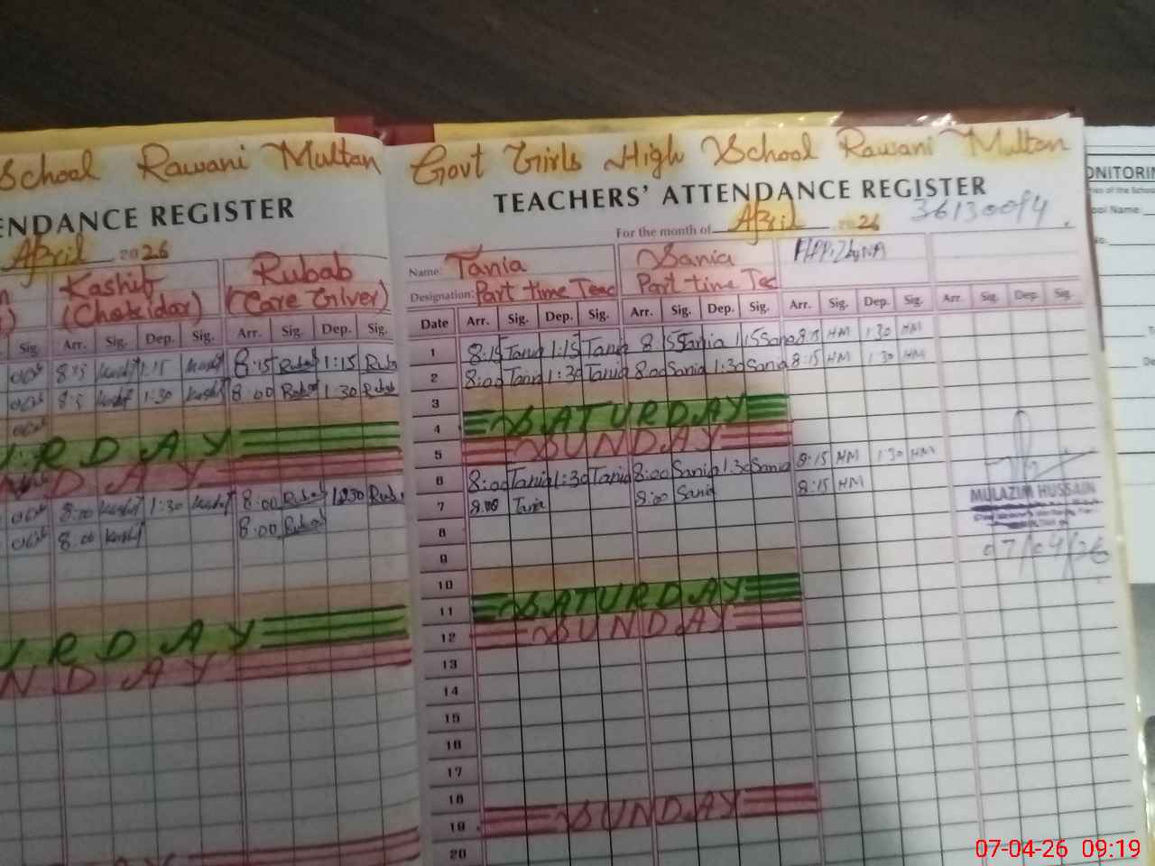 | Name: Ma**** Za**** Designation: (School Headmaster's/Headmistress's) HEADMISTRESS Phone/Cell Number: 03**** |