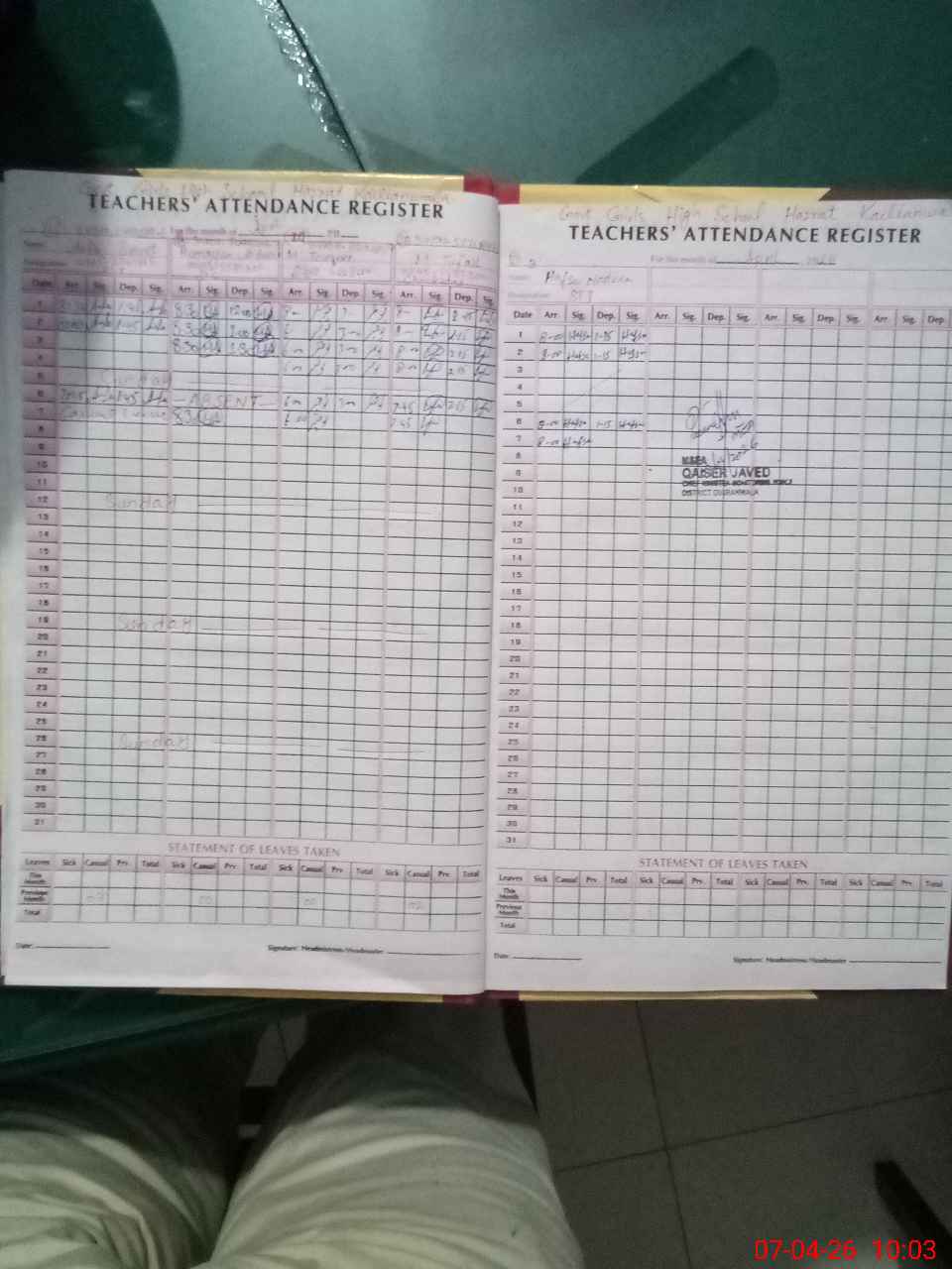 | CNIC | Full Name | Designation | R/C | Absence During Last Calender Month |