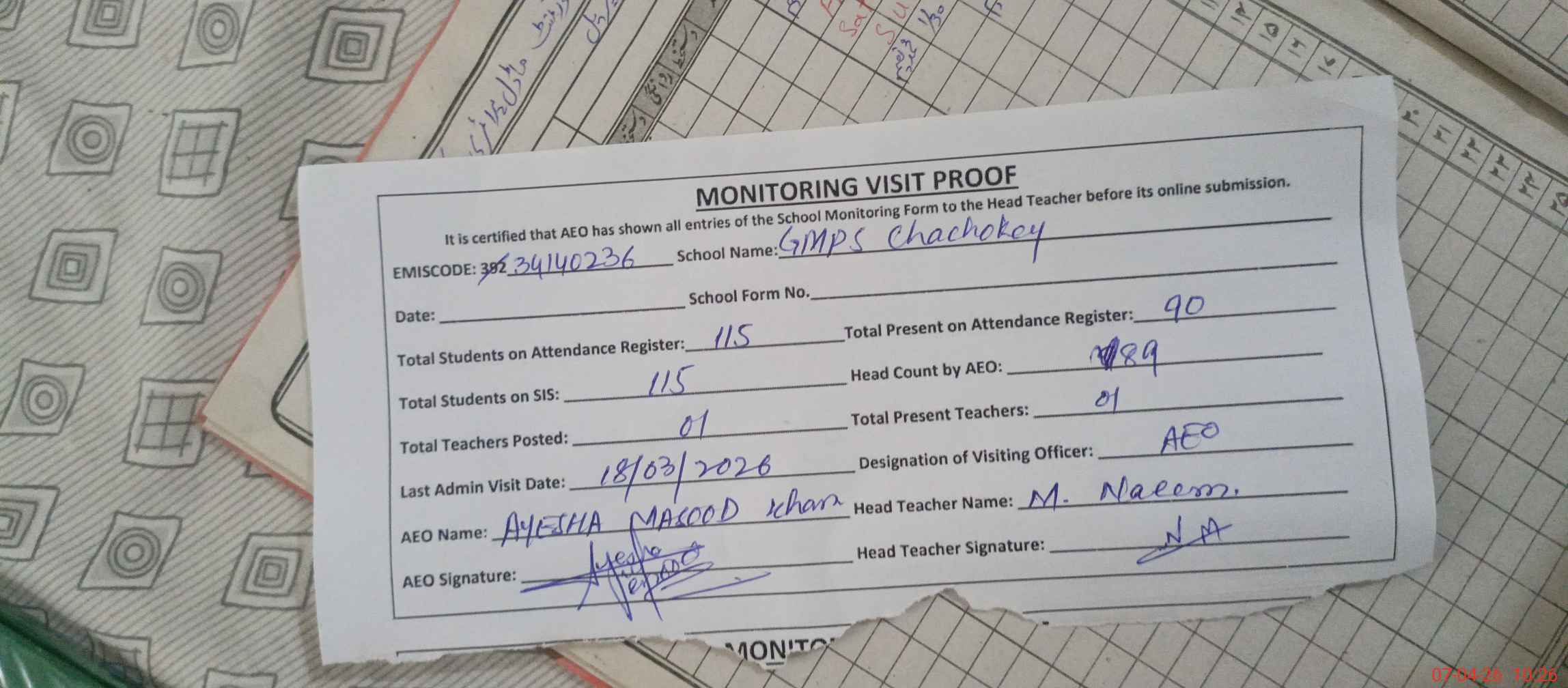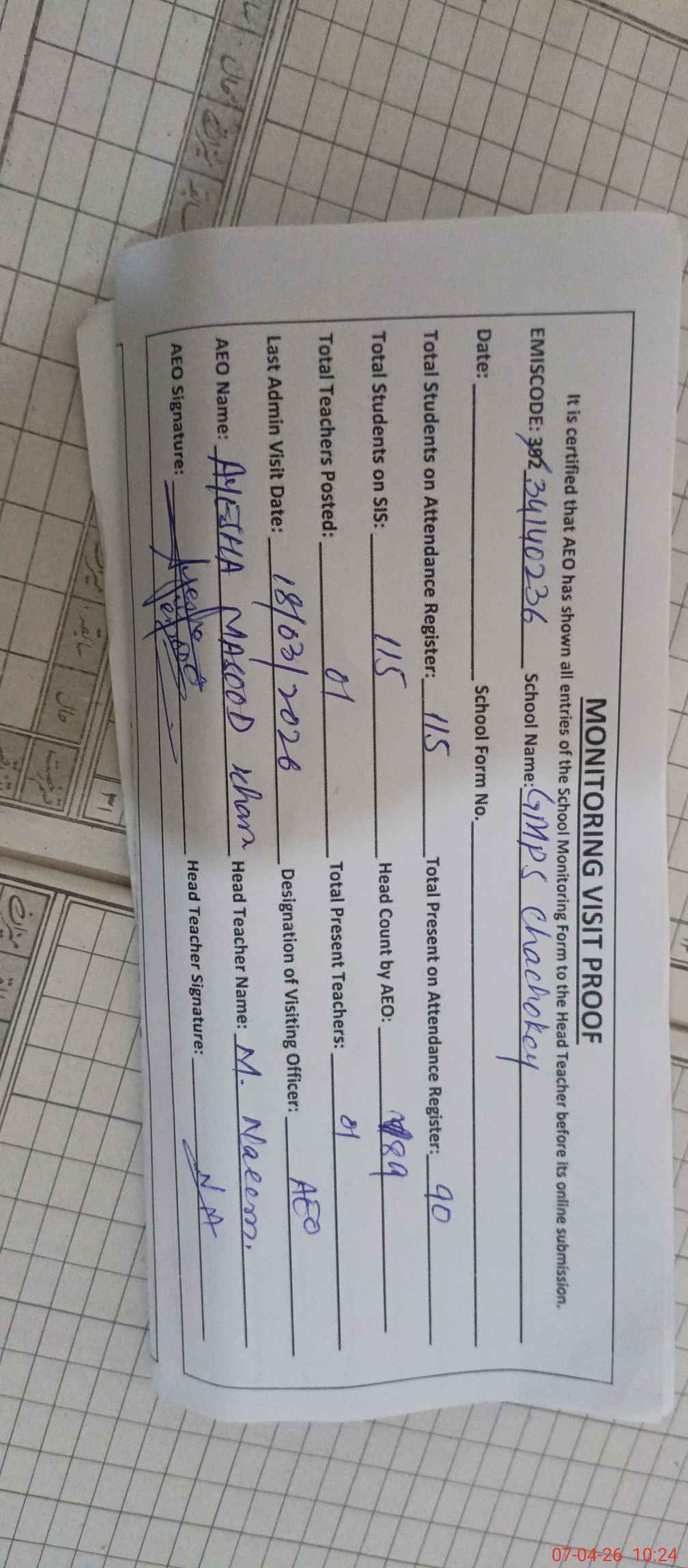 | EMIS Code: 34140236 | Name of School: GMPS CHACHOKEY | |||